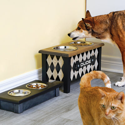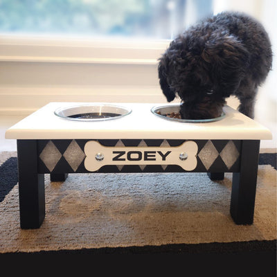 2 Bowl S (3" H) - Black Top | Grey Bottom & 2 Bowl XL (9" H) - Natural Top | Diamond Bottom